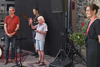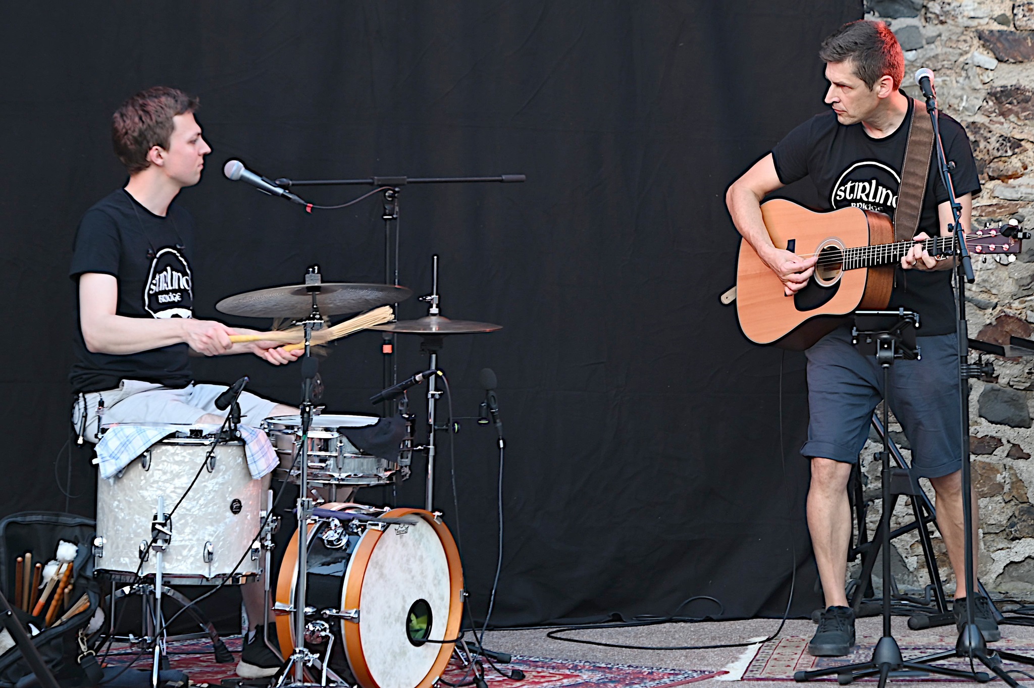 Magie liegt in der Luft und bald auch der Duft von Popcorn und Grillwürsten. Dann gerät die Luft in Schwingung. Zwischen Rosenranken und historischem Gemäuer spielen „Stirling Bridge“ Irish Folk zum Schwelgen und Mitsingen. Auch die eigenen Arrangements moderner Songs sprühen nur so vor Energie. Obschon das Duo Jo&Max in Ober-Mörlen ein Heimspiel hat – Johannes Meiser lebt in Langenhain-Ziegenberg, Musikstudent Max Pfreimer ist in der Wetterau Zuhause – sind die beiden begnadeten Musiker für viele eine Überraschung. Die Begeisterung ist groß.