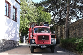 Der Sommer meint es gut mit der Premiere im Schlosshof. Malerisch legen sich Abendrot und blaue Stunde über die historische Kulisse. Sie scheint wie gemacht für einen lauen Sommerabend voll Nostalgie, Charme und Esprit. Zufall, dass gerade jetzt ein riesiger Heißluftballon vorbeifährt? Was es mit dem alten Feuerwehrauto auf sich hat, das kurz zuvor an seinen Platz vor den Zuschauerreihen getuckert ist, wird sich kurz vor Einbruch der Dunkelheit herausstellen.