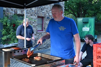 Begeistert vom Ambiente und vom Engagement vor Ort hatte sich zu Beginn des Abends Frank Dauer, Geschäftsführer vom Kultursommer Mittelhessen, geäußert. „Wir bringen Kultur ins Land“, ist das Credo des Vereins, der auch diesen malerischen Abend im Ober-Mörler Schlosshof unterstützte mit einem Kino-Projekt, das für die Kommune als Veranstalter, die Gruppe „Wir für unser Dorf“ als Organisatoren und die Besucher gleichermaßen begeisternd geriet. Bürgermeisterin Kristina Paulenz dankte für die Unterstützung, besonders auch allen Helfern und Popcorn-Pionier Helmut Haase und Team sowie der freiwilligen Feuerwehr, die spontan ihren Würstchengrill im Schlosshof aufgebaut hatte.